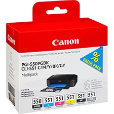 | Kit de 6 Cartuchos de tinta original Canon PGI-550+CLI-551. |
