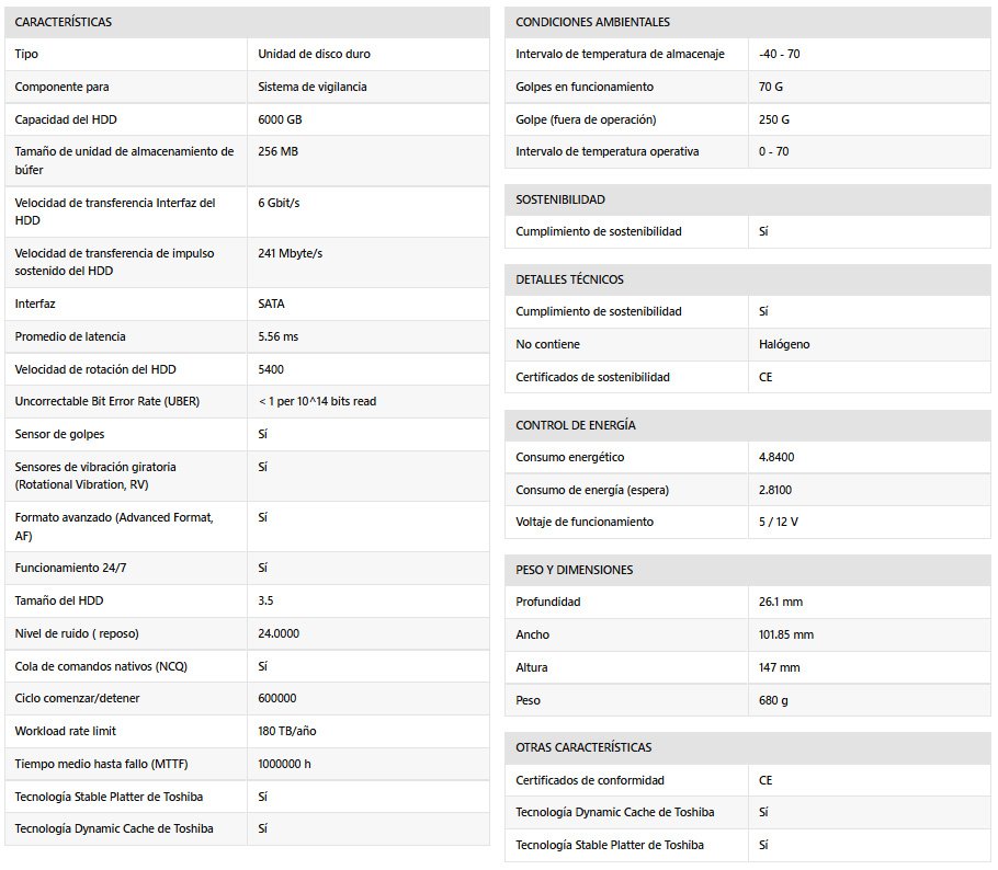 Disco Duro Toshiba Surveillance S300 3.5″ 6TB SATA Precio del Fabricante: 200 Euros |