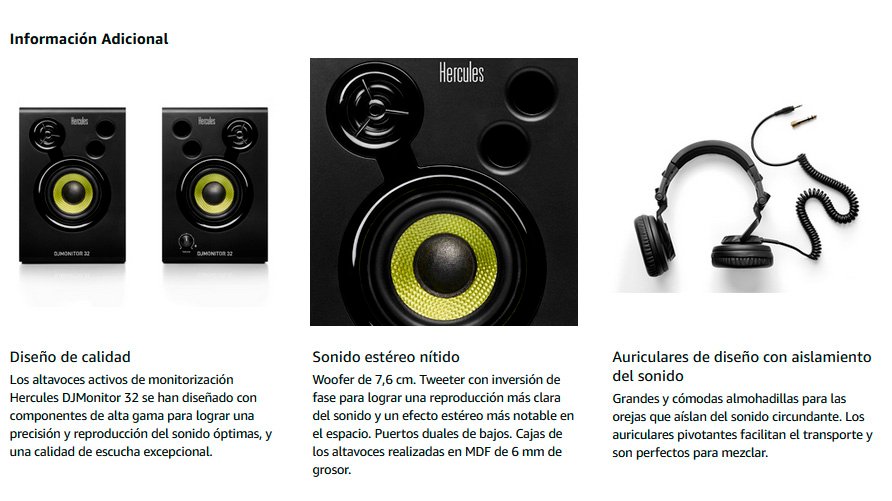 – Altavoces activos (2 x 15 W RMS de potencia) Para la mezcla en casa