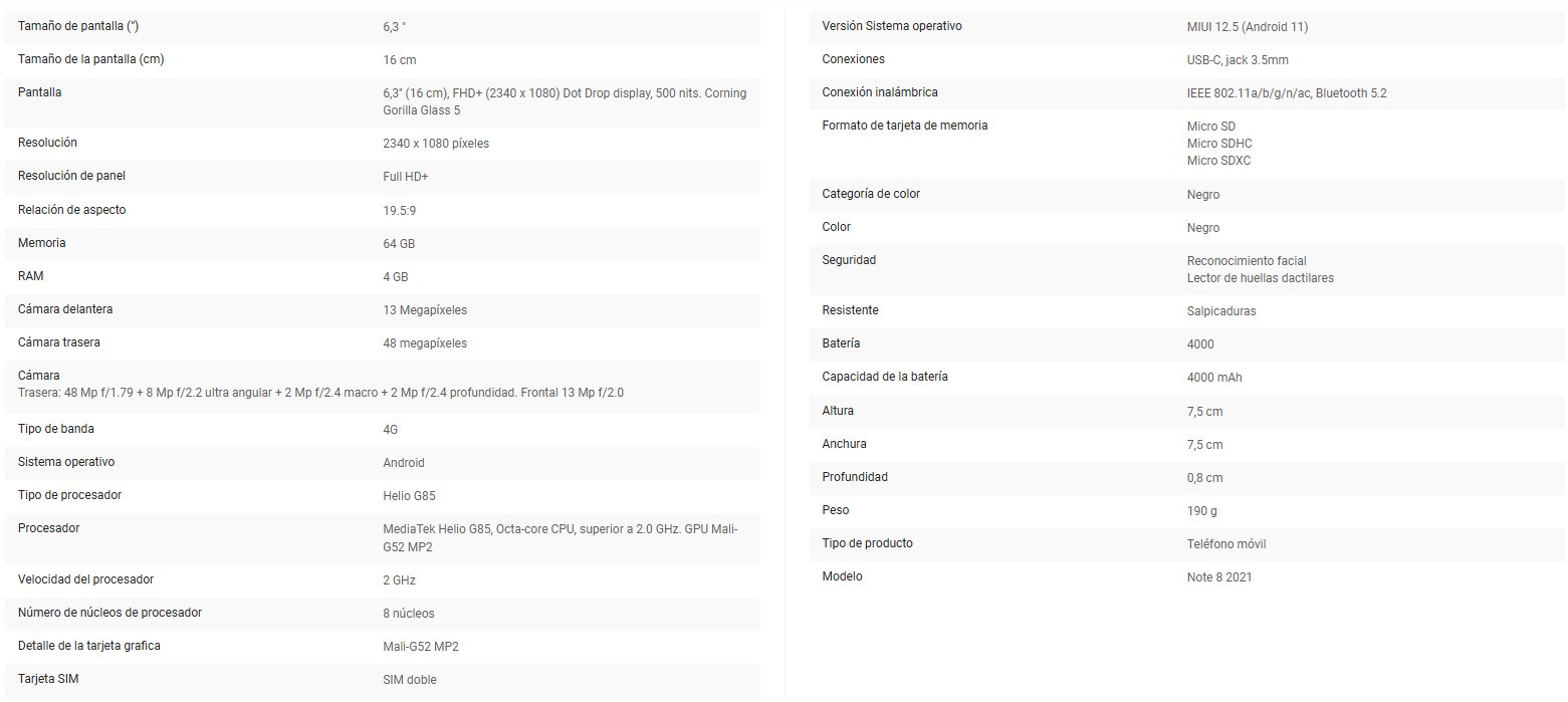 | Redmi Note 8 2021, el rey del rendimiento. Este smartphone Xiaomi cuenta con un procesador MediaTek Helio G85 de ocho núcleos, cuádruple cámara con IA de 48 MP, pantalla Dot Drop FHD de 6,3″ y batería de 4000 mAh (typ) con carga rápida de 18 W. |